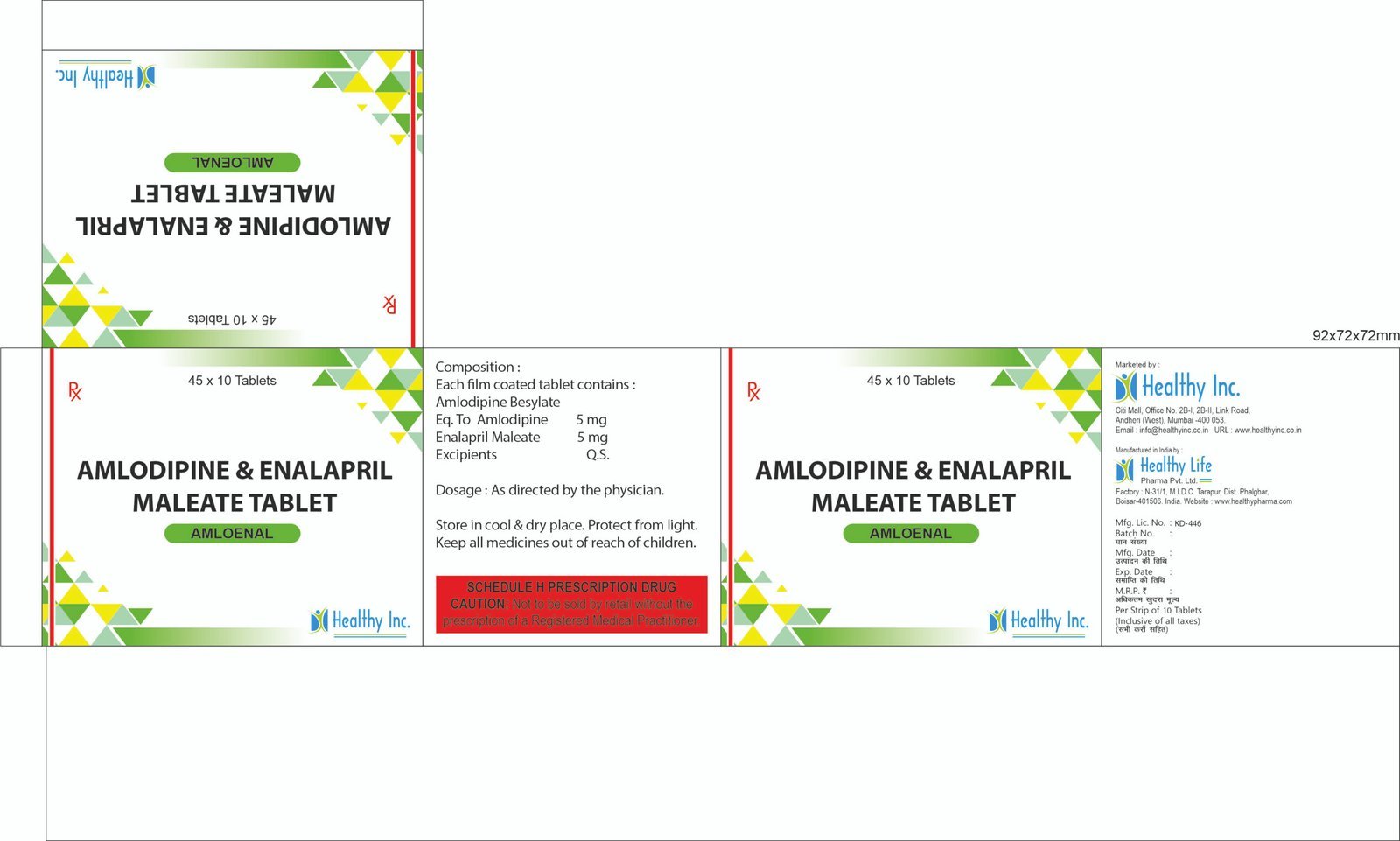 | Packaging | Alu-Alu Blister (Strictly required for Enalapril stability) |